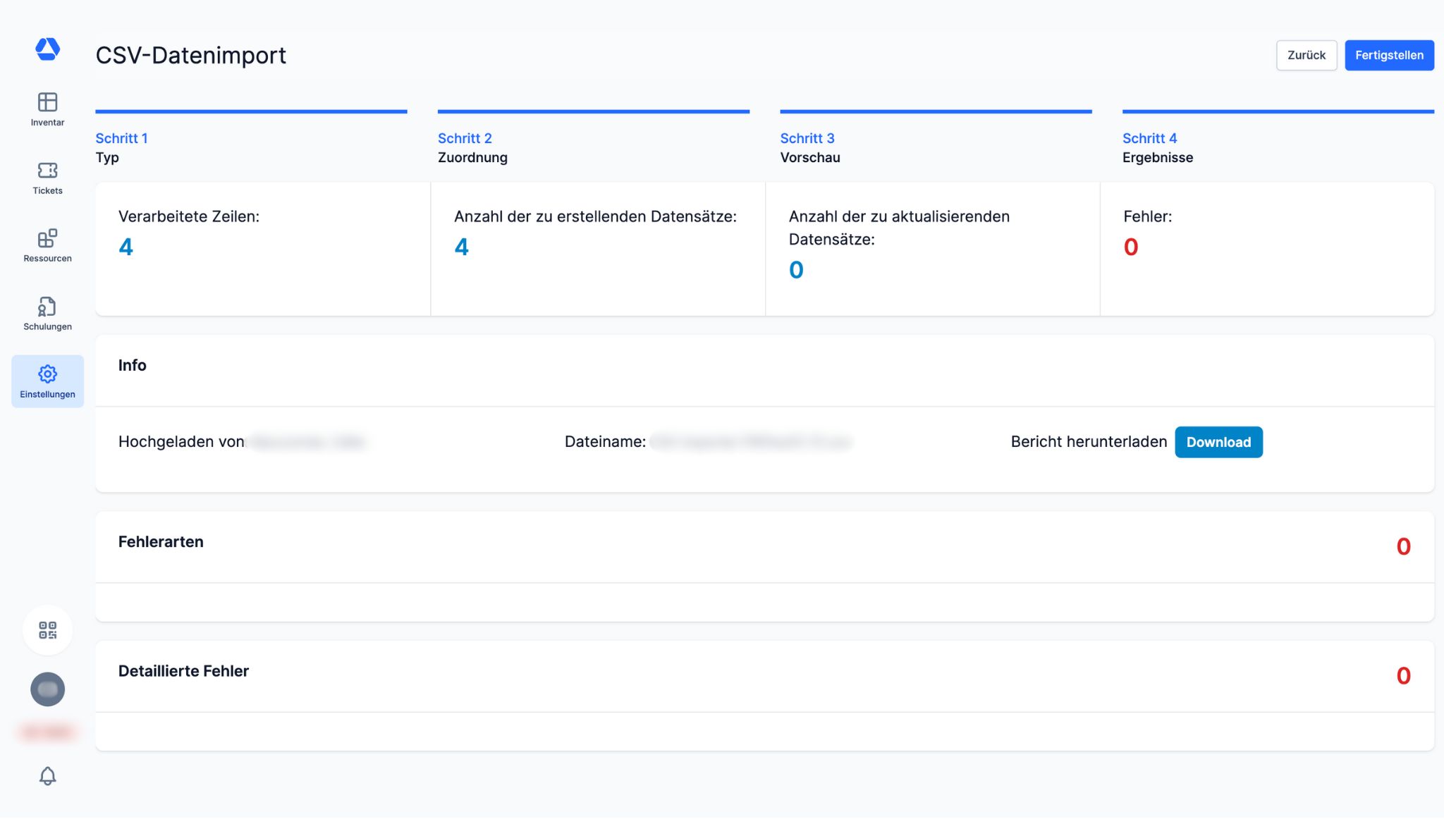 - Optional: Laden Sie die PDF-Zusammenfassung Ihres Imports herunter.
