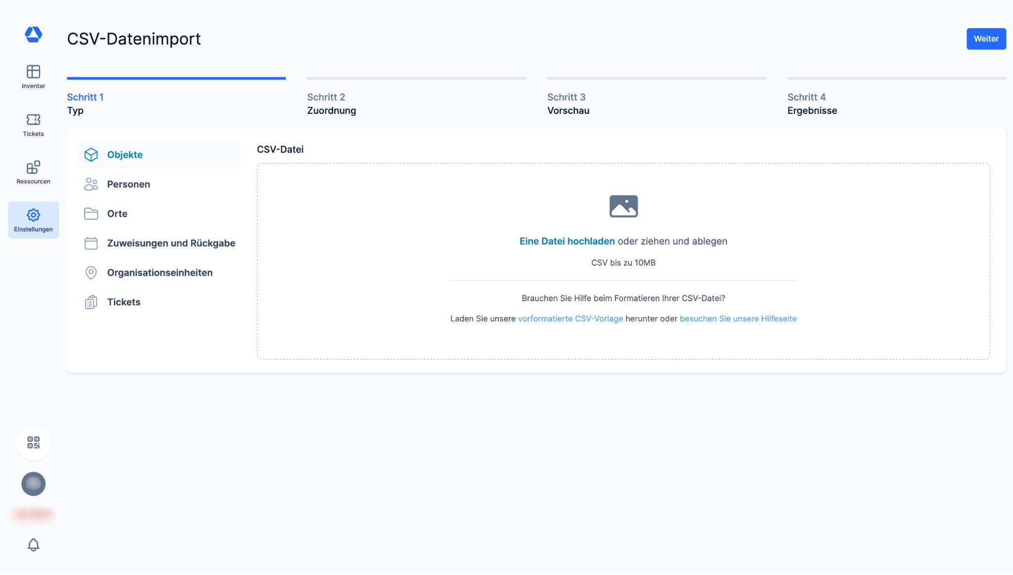 💡 Für Ihren Import können Sie entweder Ihre eigene CSV-Datei verwenden oder unsere vorformatierte CSV-Vorlage herunterladen.