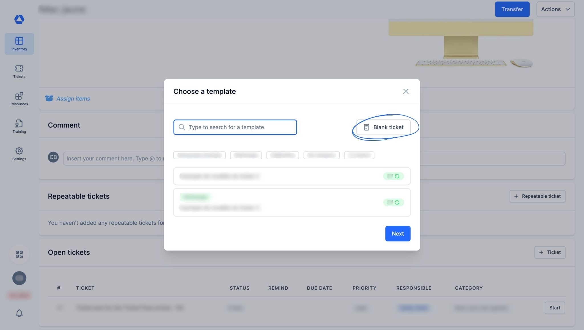 - Select "Blank ticket"