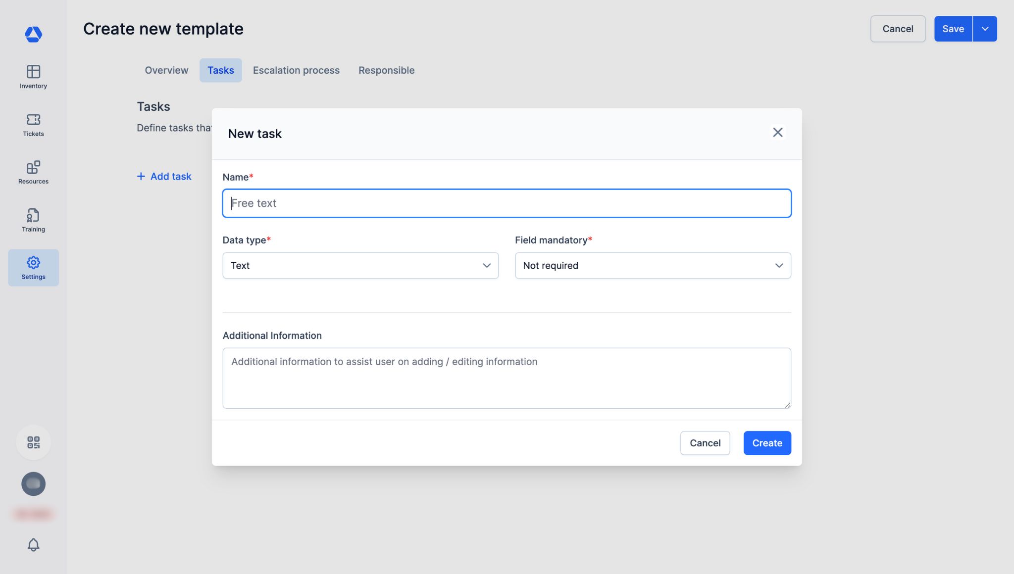 - "Files": Add filesβdocuments, photos, etc.βto automatically include them in tickets created from this template