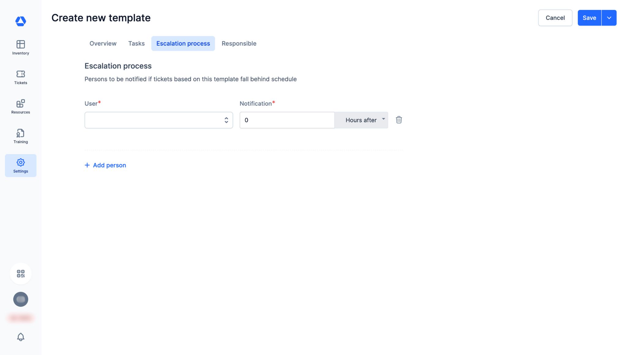 - "User": Select the person to be notified if a ticket created from this template is overdue