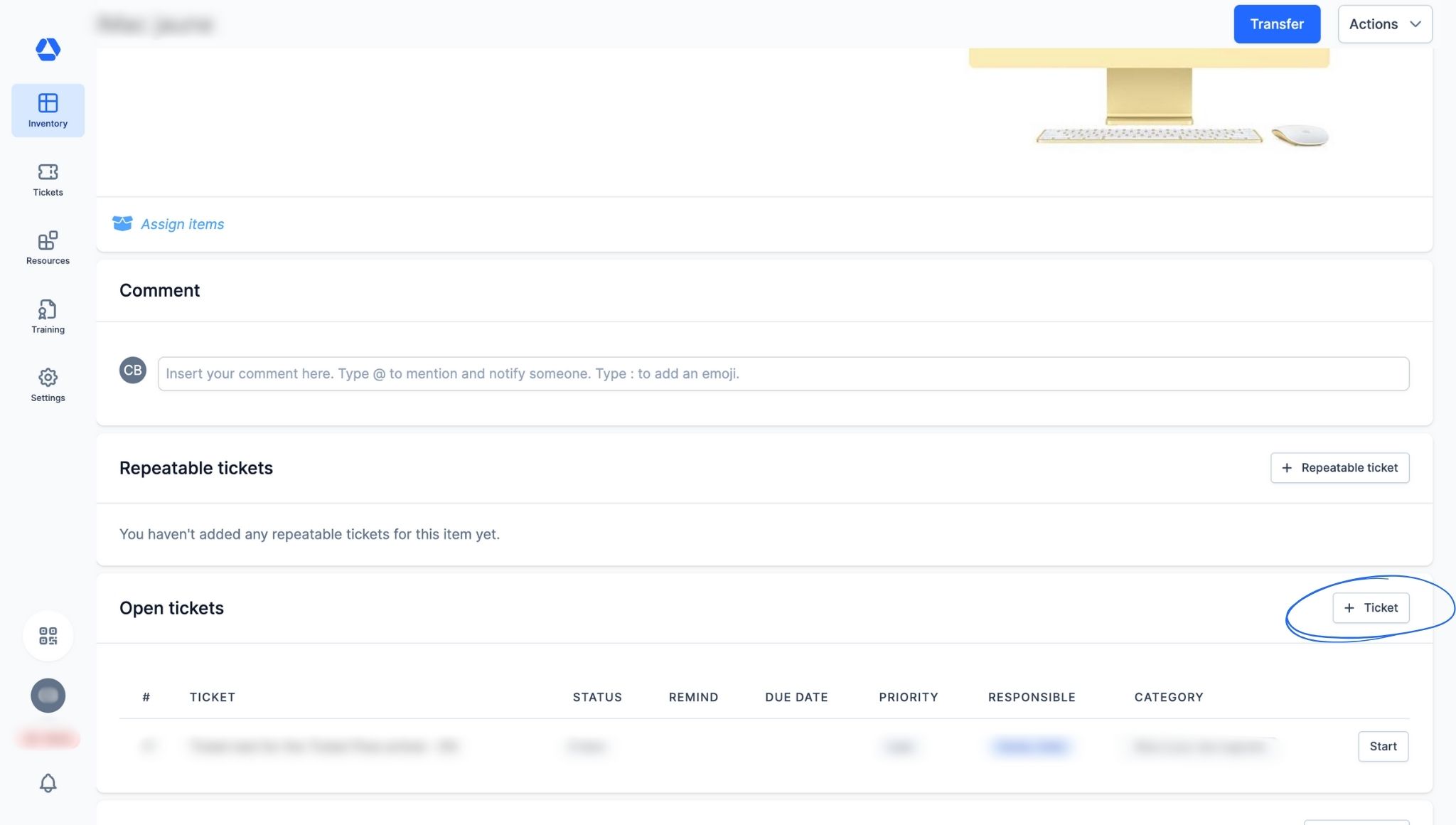 - Click "+ Ticket"