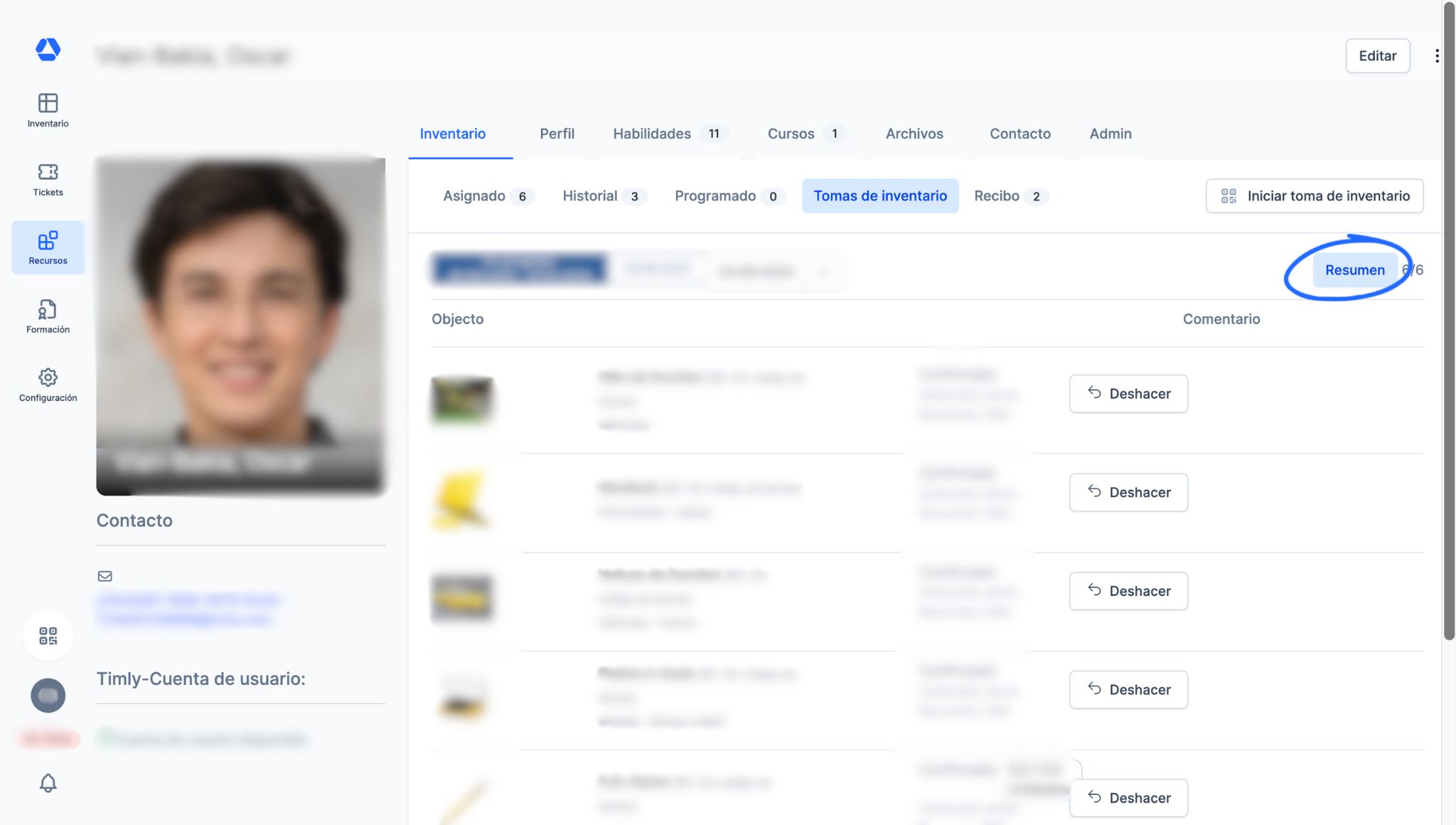 - Después de realizar la toma de inventario, haz clic en "Resumen" para generar el resumen de la toma de inventario.