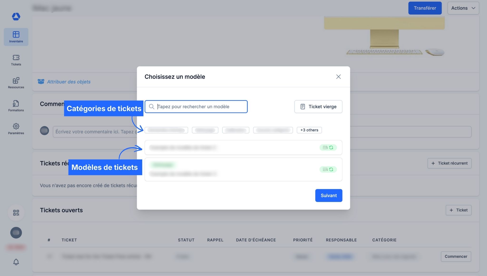 - Les modèles de tickets servent à standardiser et simplifier leur création
