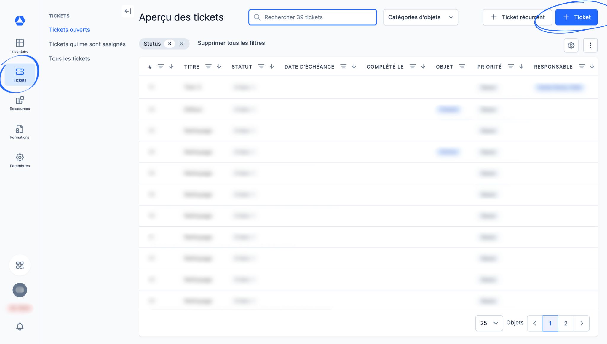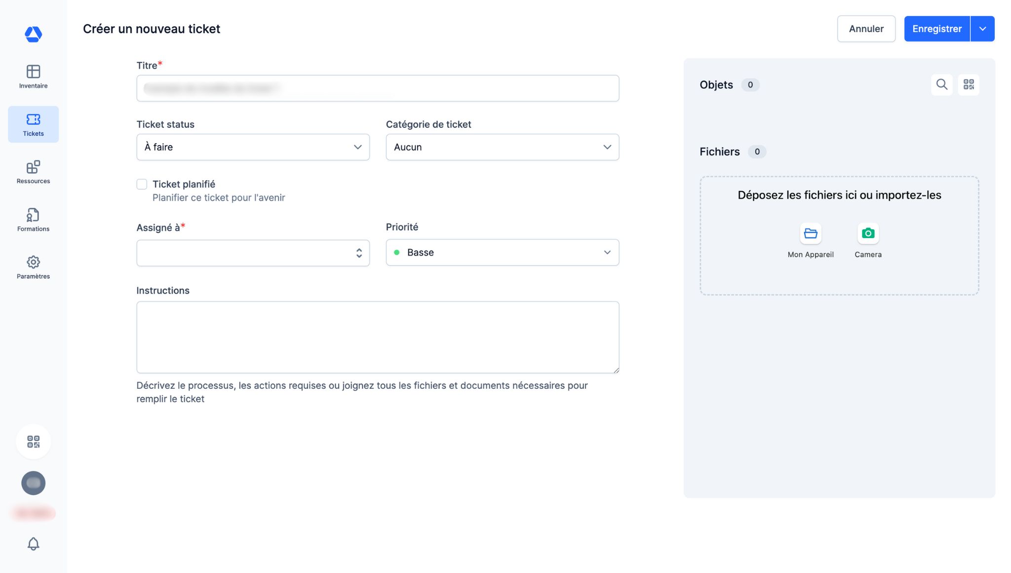 - Cliquez sur « + Ticket » ou « + Ticket récurrent »