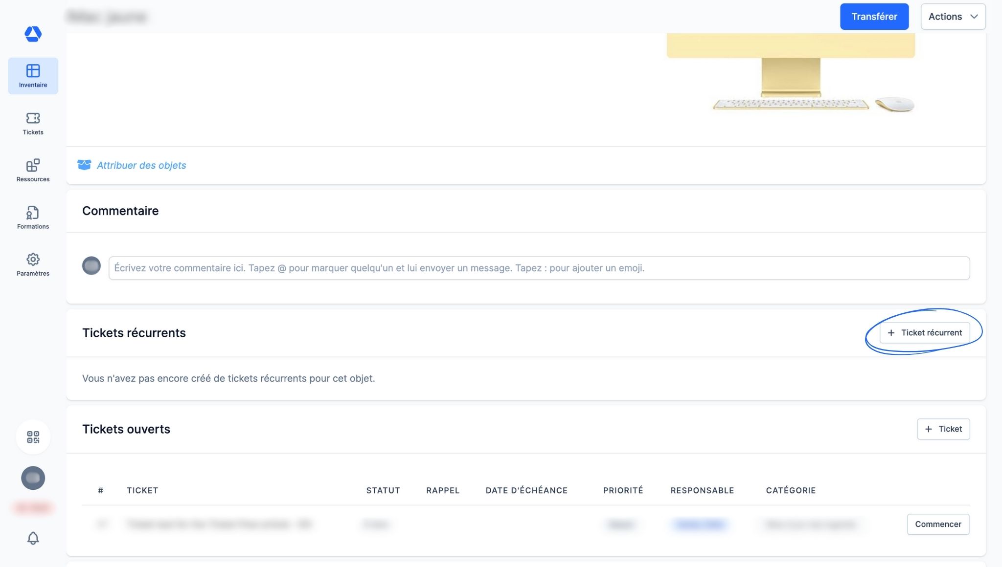 Méthode 1 : Créer un ticket récurrent depuis la fiche d'identité d'un objet