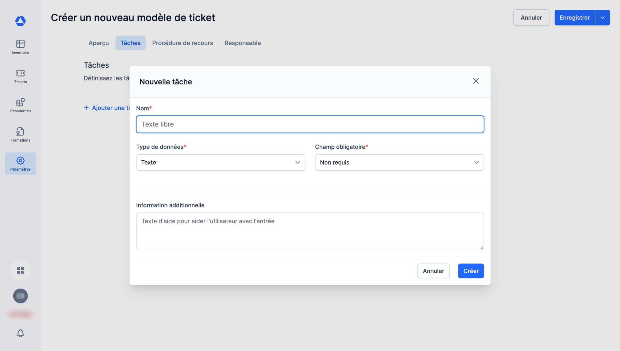 À noter : Les « champs » de tickets sont désormais appelés « tâches ».
